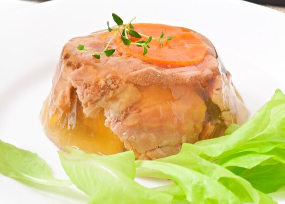 Нам потребуется: 1 кг свиных ножек, 1 морковь, 1 курица, 4 лавровых листа, 1 луковица, 6 горошин перца, 1 головка чеснока, соль — по вкусу.