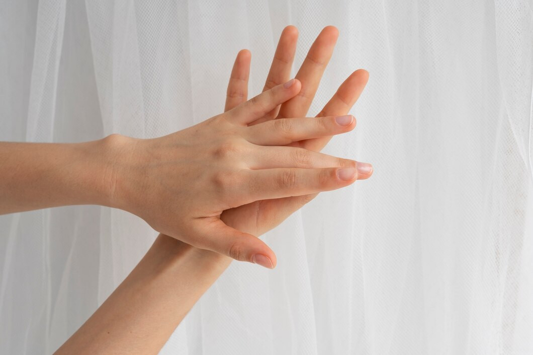 Итак, первое действие — расставляем пальцы и соединяем каждый из них подушечкой друг к другу — ладони напротив друг друга, и начинаем постукивать кончиками пальцами левой руки по кончикам пальцев правой руки очень легко и плавно.