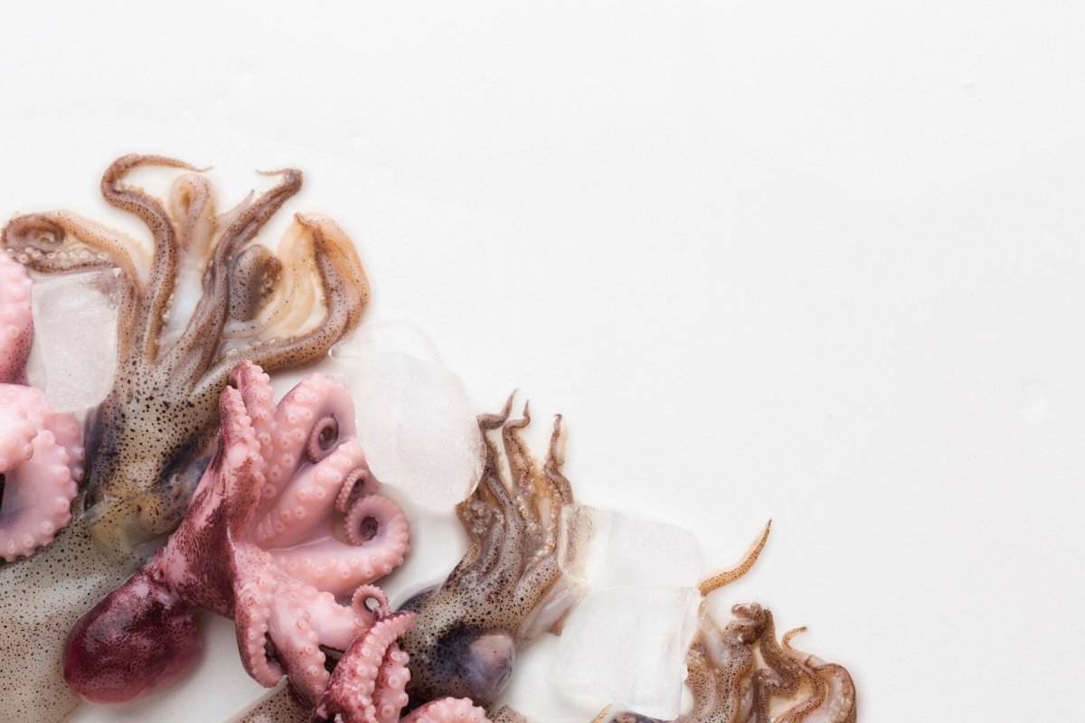 Для приготовления салата понадобятся кальмары — две тушки. Их нужно отварить: отпустить в кипящую воду на 2 минуты и сразу достать, чтобы они не были «резиновыми», потом промыть под холодной водой и почистить.