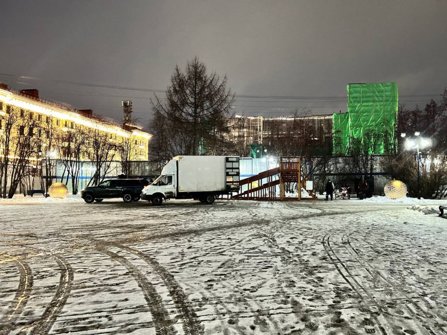 Ранее горка устанавливалась на площади Пять углов. Но сейчас это невозможно в виду проводимых там работ по подготовке к грядущей рекострукции.