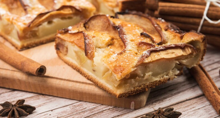 Существует много вариантов приготовления яблочного пирога. Один из них предложила автор канала «Розовый баклажан». Такой пирог с яблоками готовится очень быстро, хранится в течение нескольких дней в закрытой ёмкости. А начинки в нём получается гораздо больше, чем теста.