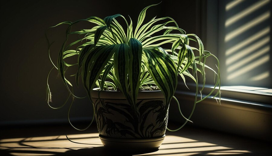 К растениям, которым не требуется много солнечного света, можно отнести и хлорофитум. Помните, такие цветы часто обитали в школьных кабинетах. А ведь света там не так уж и много. Да и стояли питомцы обычно на каких-нибудь шкафах под самым потолком. Это нормально: растение способно существовать в тенистых местах и переживать периоды засухи. При этом оно даже умудряется зацвести. Его соцветия похожи на крошечных паучков, поэтому в народе растение получило прозвище «паучник» или «дружная семейка».
