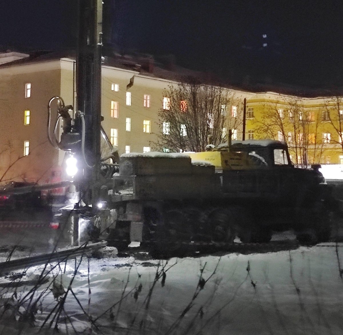 В Мурманске за зданием администрации города может начаться стройка. Возле дома №7а по улице Карла Маркса организованы буровые работы.