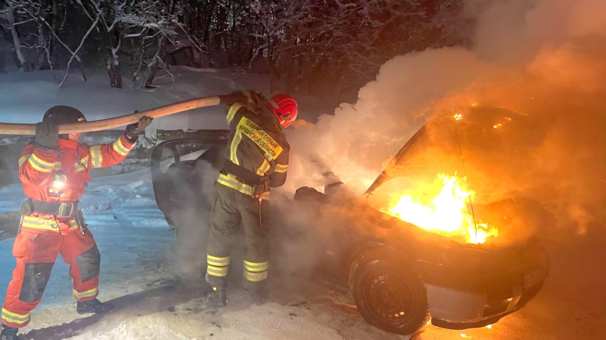 Ночью 11 января 2025 года в Мурманске на улице Шевченко загорелся автомобиль Opel Astra. На месте происшествия работал дежурный караул ПЧ-12 Мурманского филиала ГПС Управления по ГОЧС и ПБ Мурманской области.
