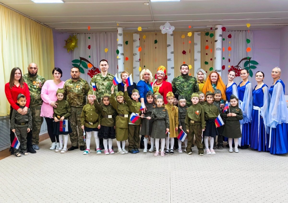 Дети, одетые в военную форму, исполнили для присутствующих тематические стихи и песни. Кроме того, на сцене детского сада выступили приглашённые танцевальные и музыкальные коллективы.