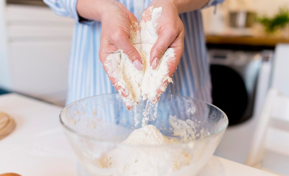Кладём тесто в миску под пищевую плёнку и оставляем на 1 час. Теперь измельчим грецкие орехи, соединяем в миске муку и сахар, холодное сливочное масло и перетираем в крошку. Смешиваем с орехами.