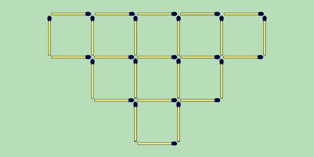 Уберите 10 спичек так, чтобы осталось только 4 квадрата.