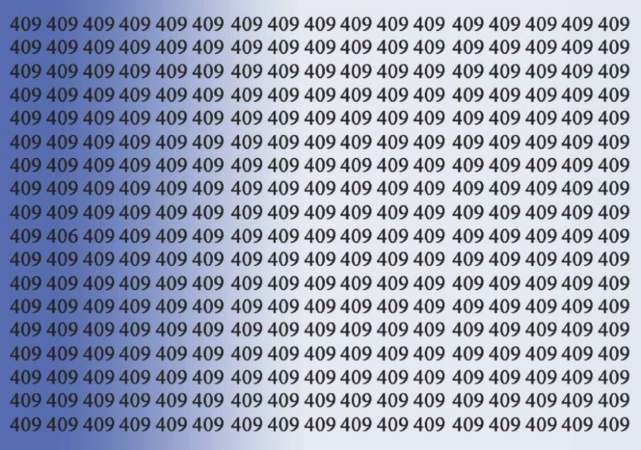 Но где-то в этих стройных рядах закралась цифра, отличающаяся от всех остальных. Если вы сумеете найти ее всего за 6 секунд, вы гениальны.