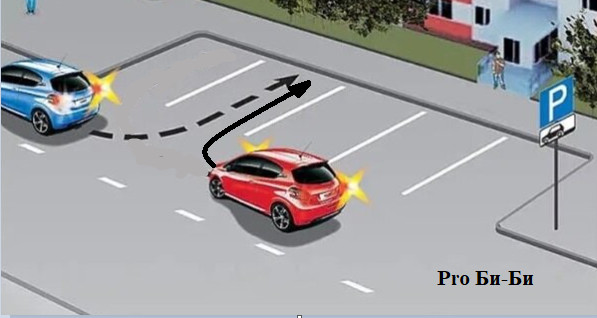 На ней изображена парковка и два автомобиля, синий и красный. Так случилось, что водители и того, и другого автомобилей решили припарковаться на одно и то же место.