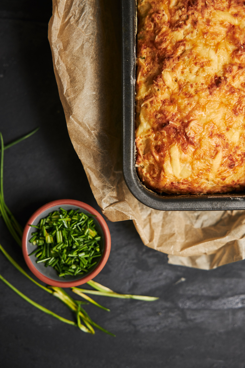Для приготовления этого незамысловатого блюда потребуется: 450 г капусты, 1 картофелина, 1 луковица, 1 зубчик чеснока, 4 яйца, 2 столовые ложки сметаны, 3 столовые ложки муки, ½ чайная ложка разрыхлителя, любимая зелень, соль и перец.
