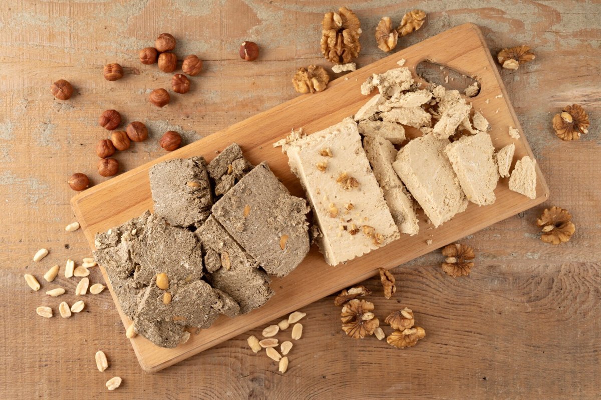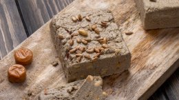 Халву делают из карамельной и белковой массы из орехов и семян. А свою волокнистую структуру она приобретает благодаря добавлению в состав натурального пенообразователя, солодкового или мыльного корня.