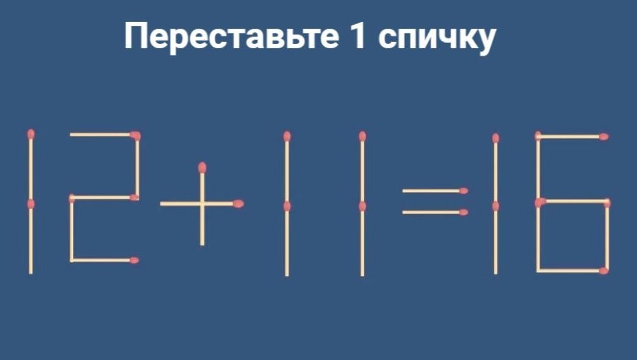 Присмотритесь к цифре 11, которая выложена из спичек. Если переместить нижнюю спичку из первой единички и расположить ее поперек, то получится цифра 4.