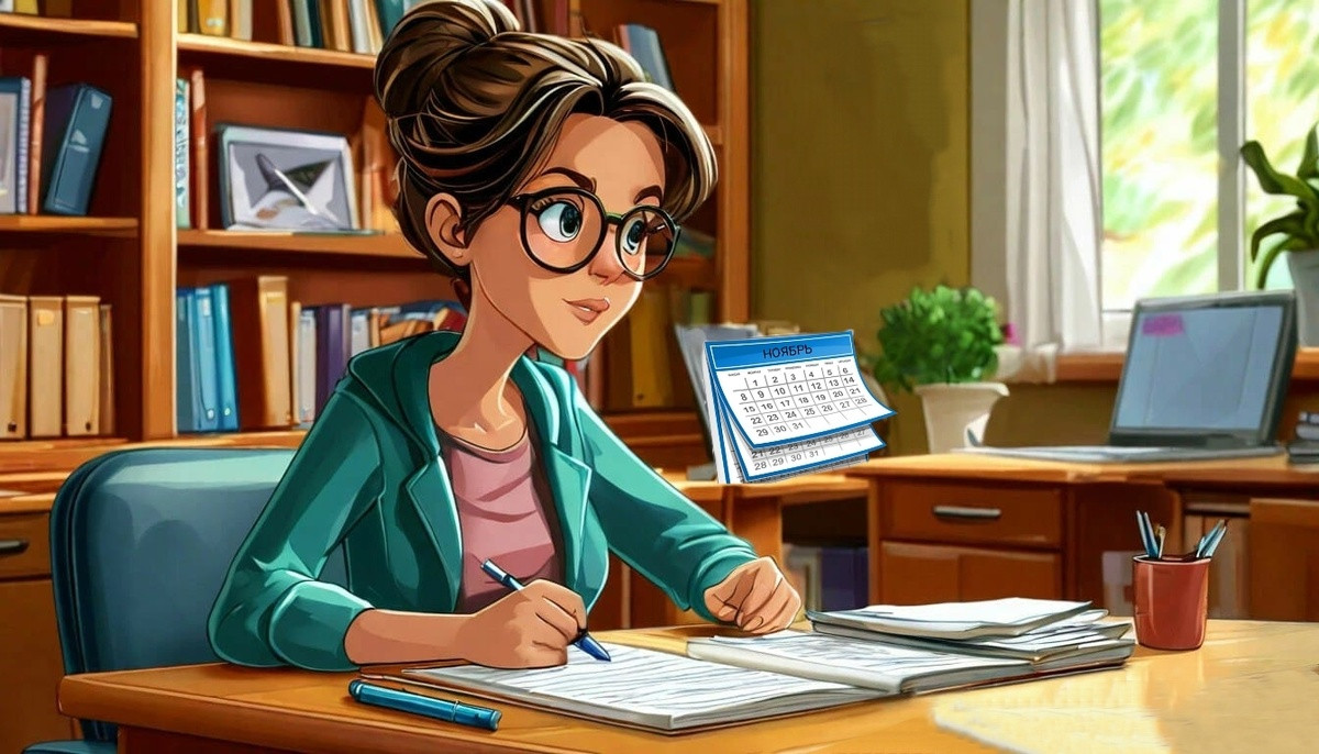 Если присмотреться получше, то можно увидеть, что на календаре за спиной у педагога обозначен месяц ноябрь. При этом в ноябре 31 день, чего, естественно, быть не может. И куда-то пропало седьмое число!