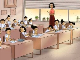 Испытайте и вы себя. Засекайте время и внимательно разглядывайте картинку, на которой девушка-учитель готовится к уроку.