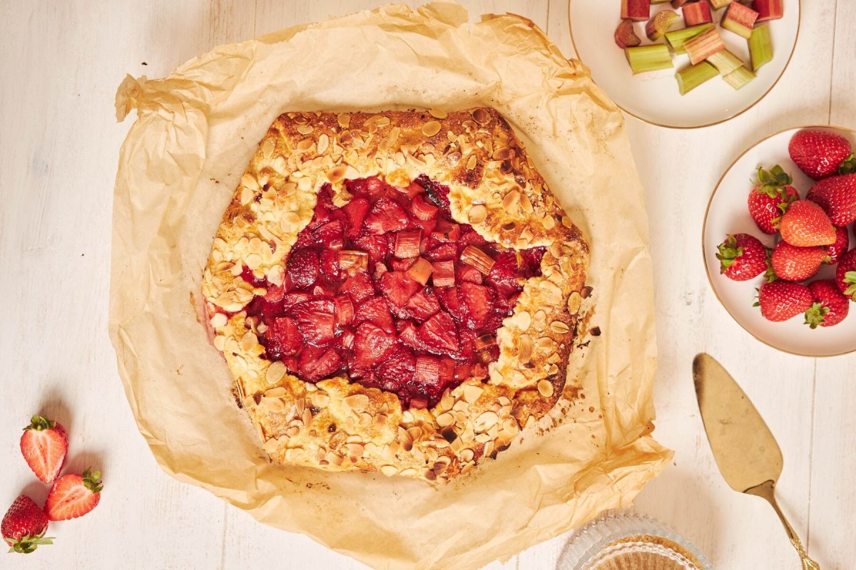 Это простой в приготовлении пирог на песочном тесте с клубничной начинкой.