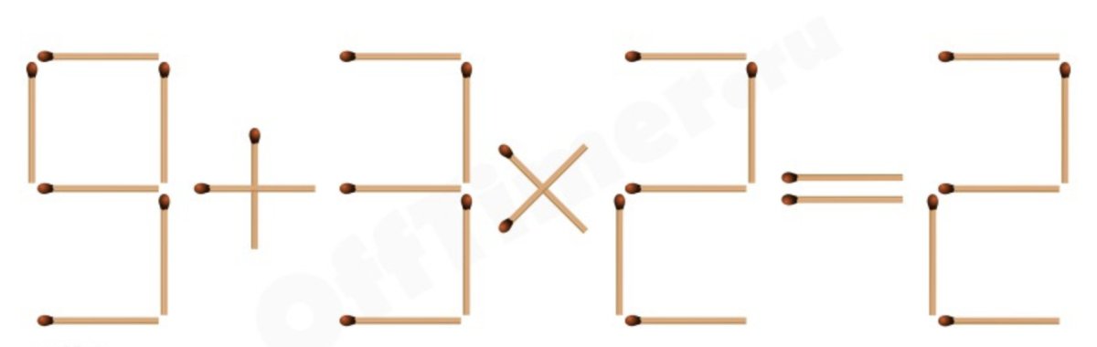 Необходимо переставить всего одну спичку таким образом, чтобы ответ в примере стал правильным. Получилось? Тогда рассказываю ответ.