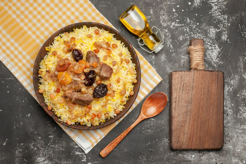 Для приготовления понадобится килограмм риса сорта «Аланга», килограмм моркови, две больших луковицы, 800 граммов мяса, около 300 граммов растительного масла, топленый бараний жир в количестве 100 граммов, литр воды, чеснок, 100 граммов изюма, 3,5 чайной ложки соли, 2 чайных ложки приправы зира.