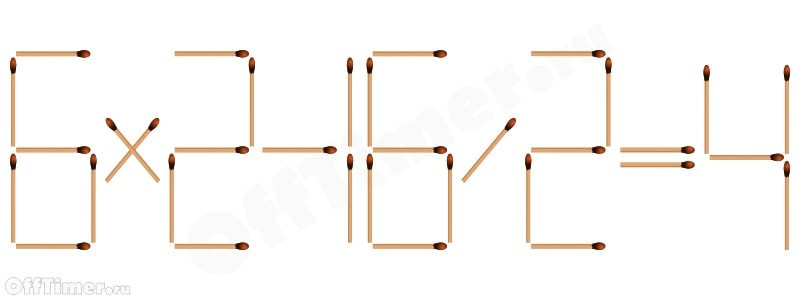 Итак, нам дано уравнение 6*2-16/2=4. Найдите 2 спички, передвинув которые, можно сохранить верное математическое равенство.