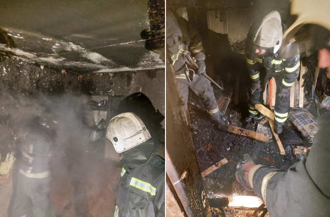 Огонь удалось полностью потушить в 17:10. Квартира вскрывалась с помощью шанцевого инструмента. В результате пожара в двухкомнатной квартире в одной из комнат сгорела мебель и предметы домашнего обихода. Помещение закопчено по всей площади. Нарушено остекление в квартире и на лестничной площадке.
