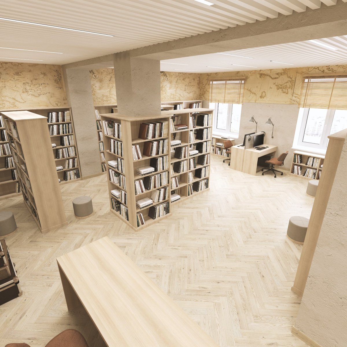 Пространство библиотеки зонируют для людей разного возраста и физических возможностей. Гибкий подход к созданию пространства позволит предусмотреть во всех залах локации как для уединенного времяпрепровождения, так и для групповой работы - проектной и исследовательской деятельности, настольных игр, мозговых штурмов и заседаний клубов, лекториев, фестивалей, мастер-классов, тренингов.