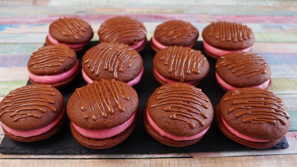 9. Наносим крем на печенья и накрываем сверху ещё одним печеньем;