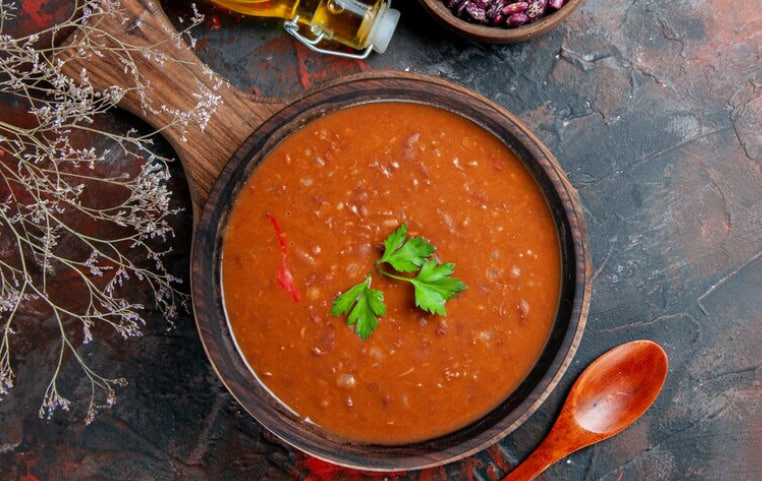 В основе супа, рецепт которого предложили авторы канала Палочки для еды — рецепты — томат и чили. Сытным это блюдо делают нежная курочка и фасоль. Этот суп — то что нужно, чтобы согреться в зимние холода.