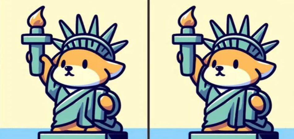 Итак, давайте выясним, насколько вы внимательно наблюдаете за происходящим. Рассмотрите представленное изображение, вдохновлённое известной Статуей Свободы в США — с милым корги. Между картинками есть 3 различия.