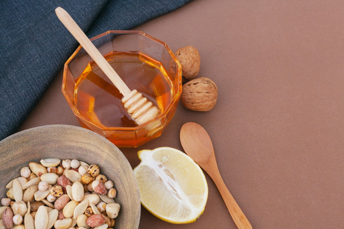Можно взять грецкие орехи, засыпать их в баночку объёмом 250 мл, добавить мёд и орехи — в пропорции 50:50. Чтобы орехи раскрыли аромат, можно их подсушить немного на сковородке. Ничего в дальнейшем настаивать не нужно, смесь готова к употреблению.