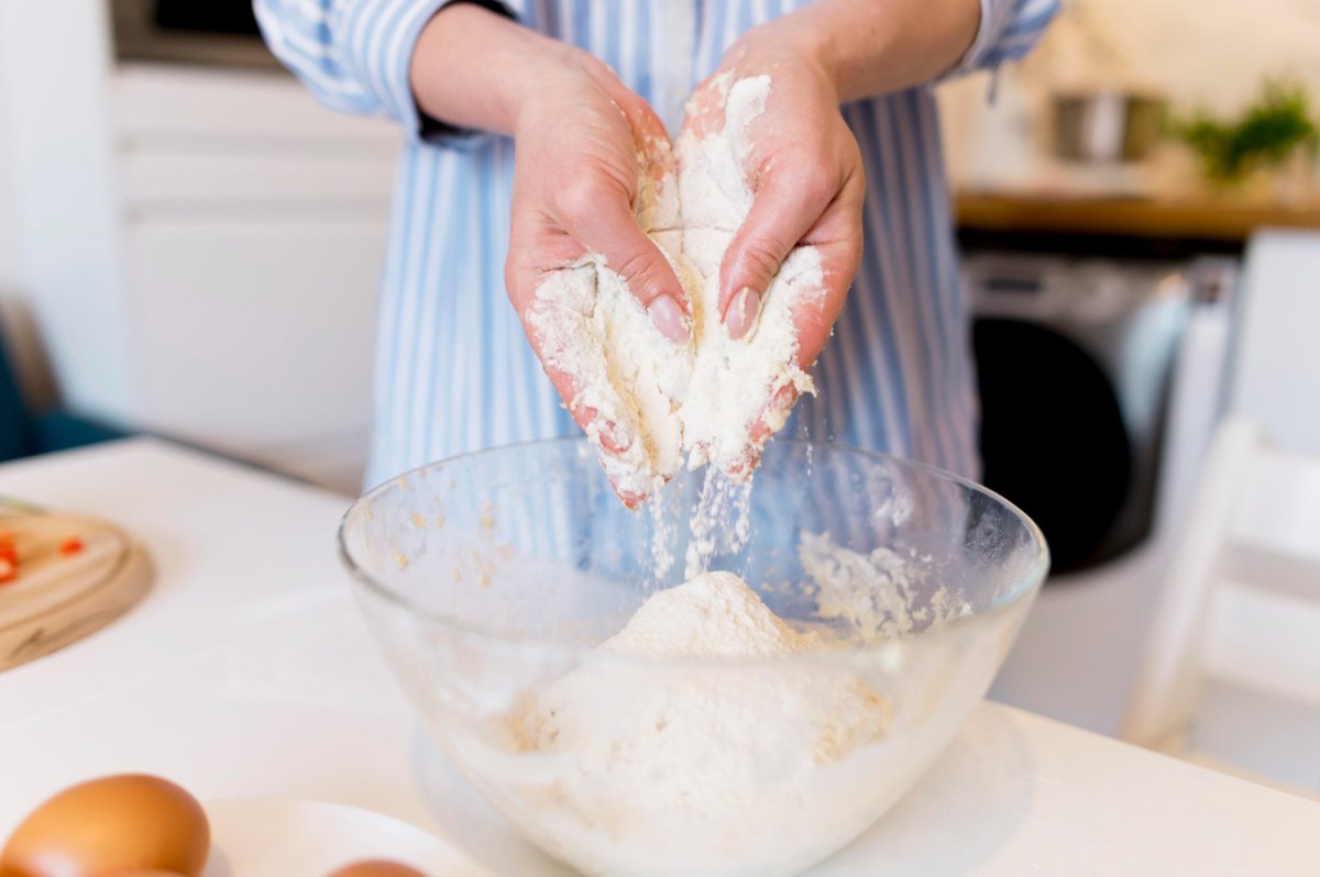 Добавляем сахар и дрожжи в тёплое молоко, перемешиваем и всыпаем пару ложек просеянной муки. Опару нужно довести до консистенции сметаны, после чего накрываем полотенцем на 30 минут. Разбиваем в миску яйца, соль и перемешиваем. Выливаем опару в смесь, добавляем сахар и размешиваем, положим муку. Оставляем под полотенцем на 1,5 часа.