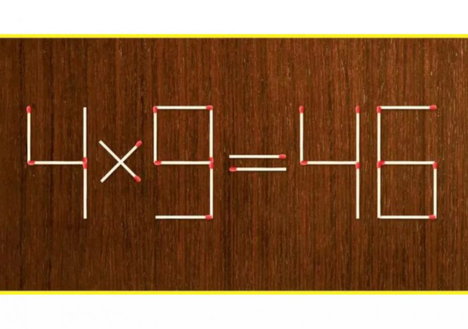 Итак, вашему вниманию представлено равенство: «4×9=46». Конечно, оно неверное. Задача: переставить две спички так, чтобы уравнение стало правильным. При этом, помните, что у вас есть на это всего 20 секунд.