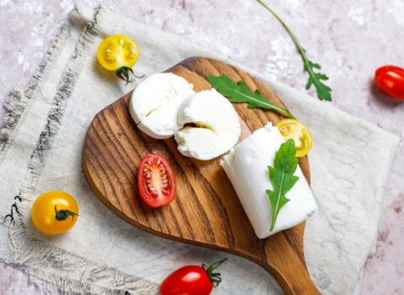 Моцарелла. Этот мягкий белый сыр очень насыщен влагой и считается одним из полезных. Его производят из коровьего молока. Так, примерно в 30 г сыра содержится 6% дневной нормы натрия, 11% — кальция, 6 г белка и жиров. Кроме того, сыр богат пробиотиками.