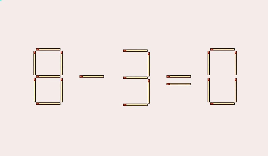 Одну из таких интересных задачек предложила решить «Слонимская газета». Так, вашему вниманию предлагается пример, выложенный спичками: 8–3=0. Необходимо переставить всего одну спичку, чтобы равенство стало верным.