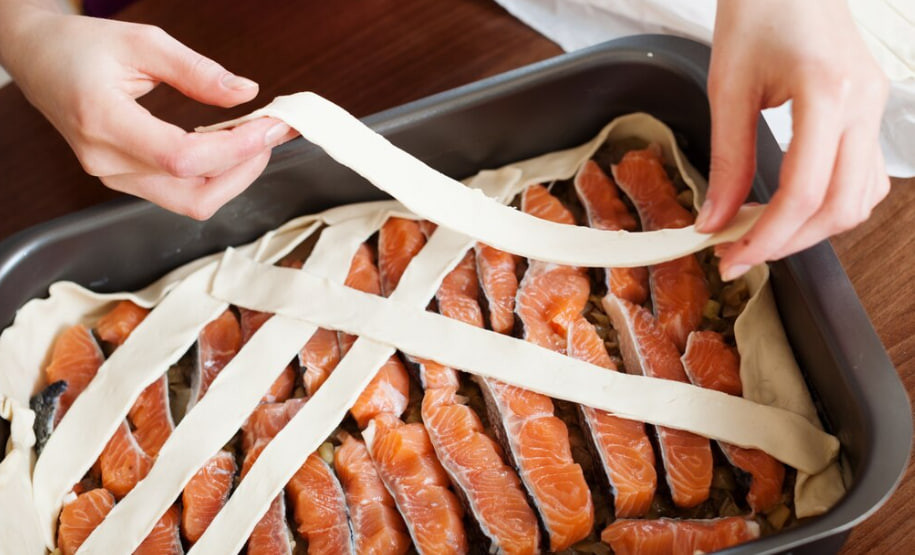 Автор канала «Готовим дома» предложила сделать киш (открытый пирог) с красной рыбкой, шпинатом и сыром. Получается очень сытное блюдо, которое, несомненно, соберёт много положительных отзывов.
