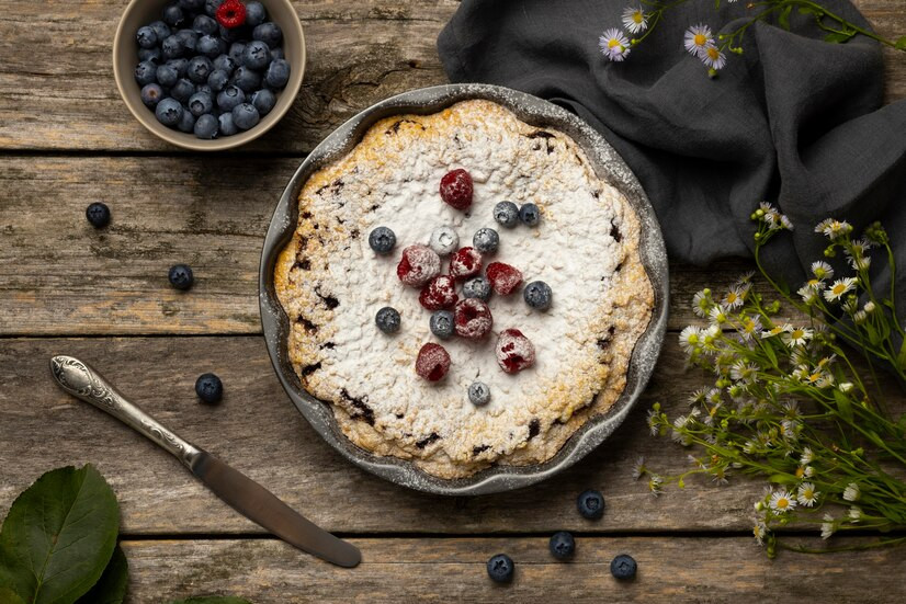 Понадобится 600 граммов муки, 2 чайные ложки разрыхлителя, 4 яйца, 200 граммов сахара, немного соли и пачка сливочного масла. Для начинки 240 граммов сахара, 4 столовые ложки крахмала кукурузы, 4 яйца, 800 граммов сметаны. Также можно добавить 300 граммов замороженных ягод или измельченных фруктов.