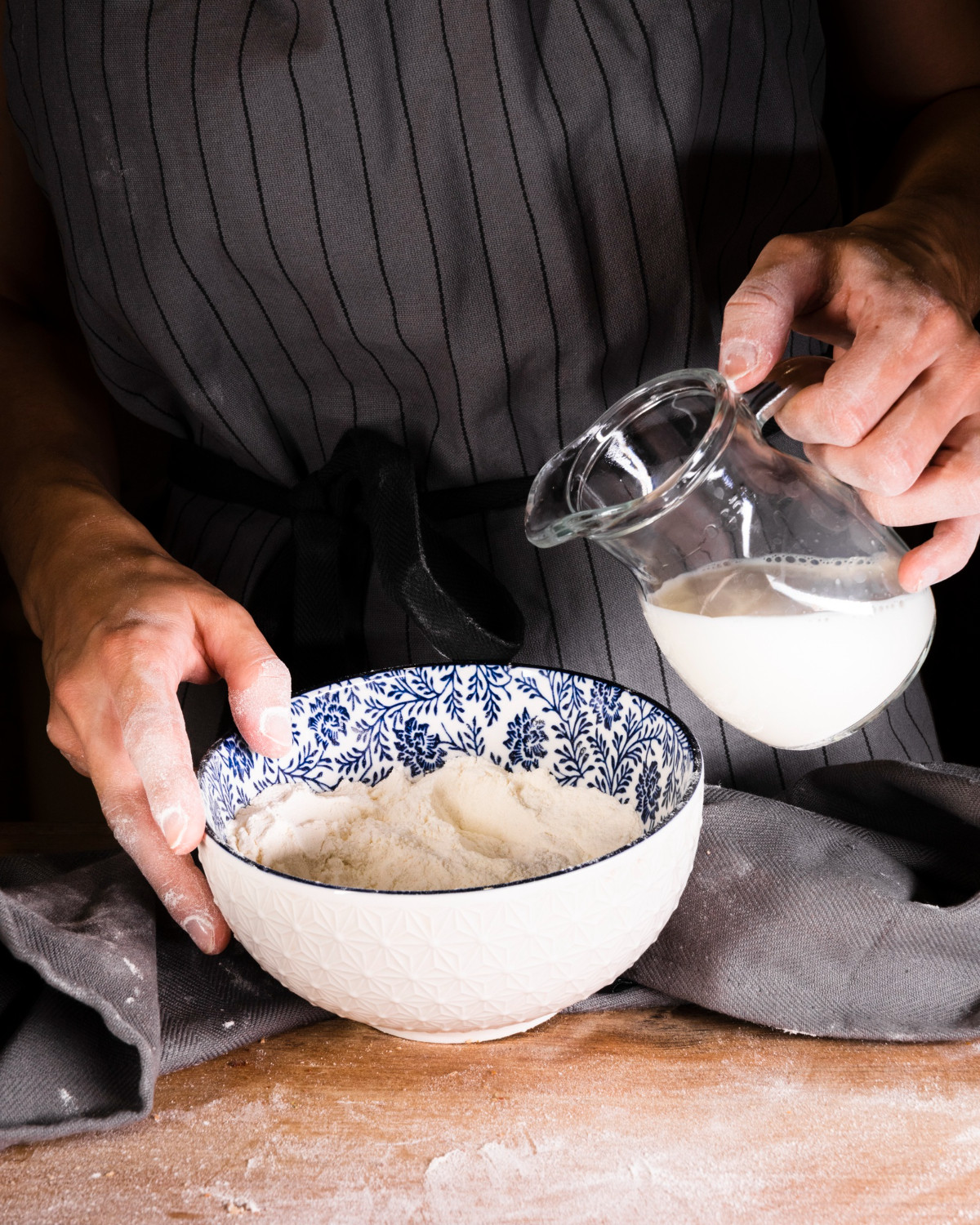 Нам потребуется: 100 г филе минтая, 50 мл кефира, 1/3 чайной ложки соли и соды, 1 куриное яйцо, 50 г муки, 20 г тёртого сыра, любимая зелень, перец, немного растительного масла.