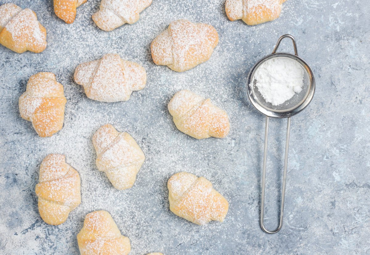 Перед подачей рогалики можно присыпать сахарной пудрой.