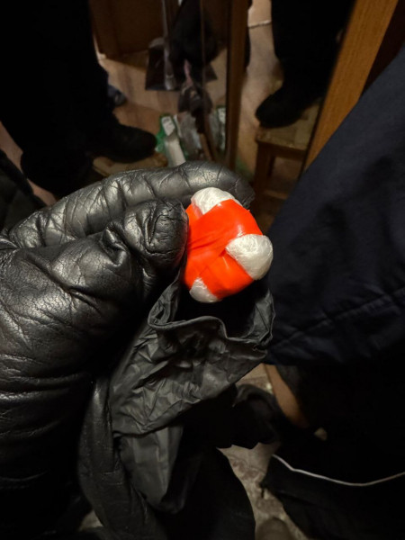 В ходе проведения обыска по месту жительства подозреваемого полицейские обнаружили четыре свёртка с веществом неизвестного происхождения, а также колбу белого цвета с ампулой, внутри которого находилось вещество. Кроме того, были обнаружены различные фрагменты для расфасовки наркотических средств.