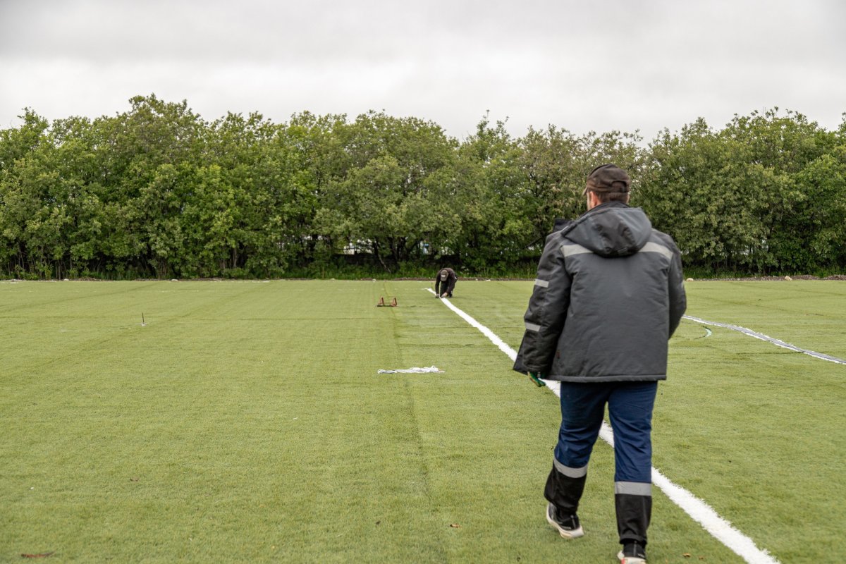 В связи с получением отрицательного заключения государственной экспертизы на заседании штаба по строительству стадиона и по итогам встречи с жителями Ленинского округа было принято решение о реализации другого проекта – "Строительство открытого плоскостного физкультурно-спортивного сооружения «Футбольное поле», находящееся по адресу: город Мурманск, улица Адмирала флота Лобова, д.51". Работы были завершены 10 августа 2023 года.