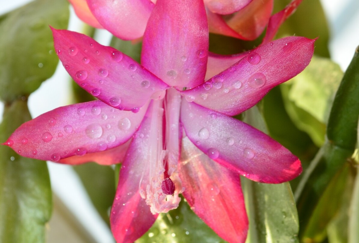 Ну, а уж цветение — это просто феерия. Кстати, обращали внимание, что зацветает декабрист каждый раз на новом листочке. Дважды бутон в одном месте не появляется. Так что, если хочется более обильного цветения, сделайте все, чтобы ваш цветок образовал больше бутонов.