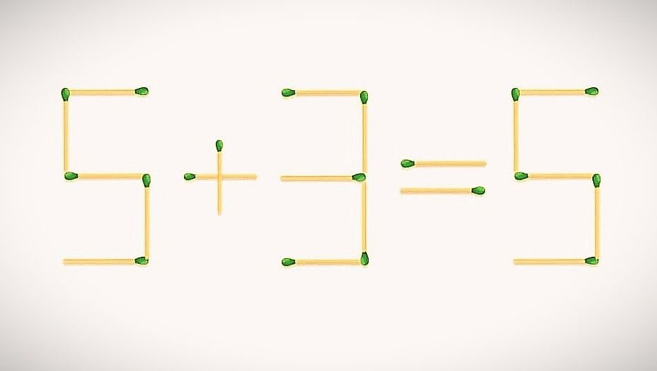 Над одной из них предложила поразмышлять «Слонимская газета». Итак, перед вами равенство: 5+3=5. Сейчас оно неверное, но ваша задача сделать наоборот — достаточно переместить две спички. Отметим, что на поиск правильного решения у вас есть всего 12 секунд.