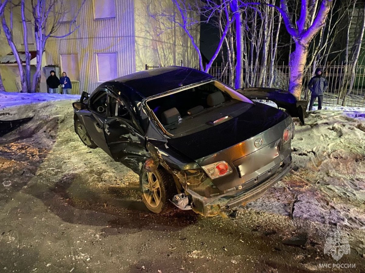 На одной из улиц Североморска столкнулись и съехали с дороги два легковых автомобиля: «Форд Фокус» и «Мазда 3».