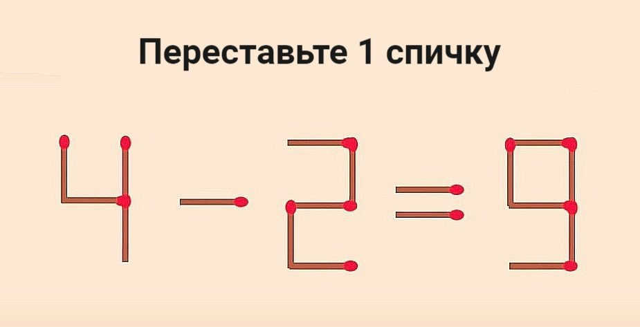 За 10 секунд нужно переложить одну спичку, добившись равенства между примером и ответом.