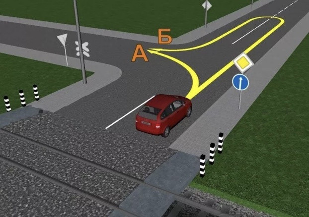 Получается, траекторию А для манёвра выбирать не стоит. Тем более, что она противоречит действиям установленного знака. А вот при движении по траектории Б правила будут соблюдены.