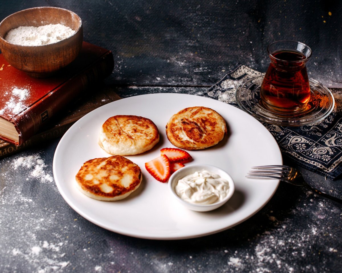 Для приготовления понадобится 225 миллилитров кефира, 125 миллилитров молока, одно куриное яйцо, немного соли, столовая ложка сахара, чуть-чуть ванильного сахара, 310 граммов муки, половина чайной ложки соды, растительное масло для жарки.