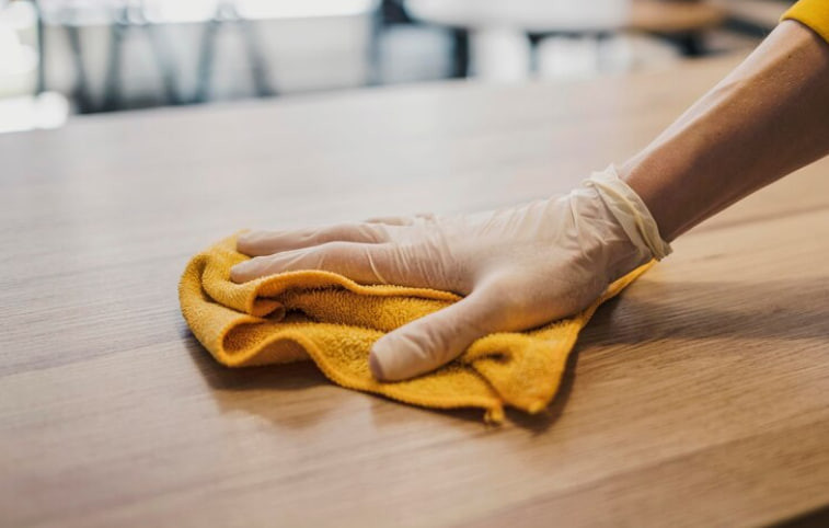 Во-первых, отличным средством является водный раствор уксуса. Он подходит практически для всех поверхностей. Нужные компоненты соединяют в равных пропорциях, перемешивают и обрабатывают поверхность с помощью пульверизатора и губки. Потом мебель протирают сухой салфеткой.