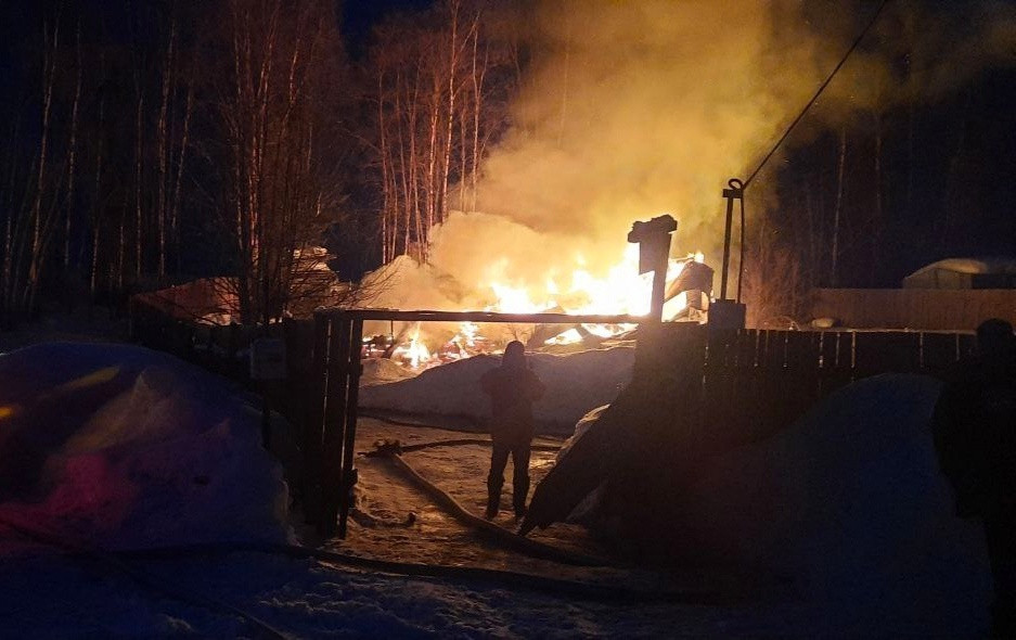Огонь полностью уничтожил двухэтажное деревянное строение площадью 36 кв. метров.