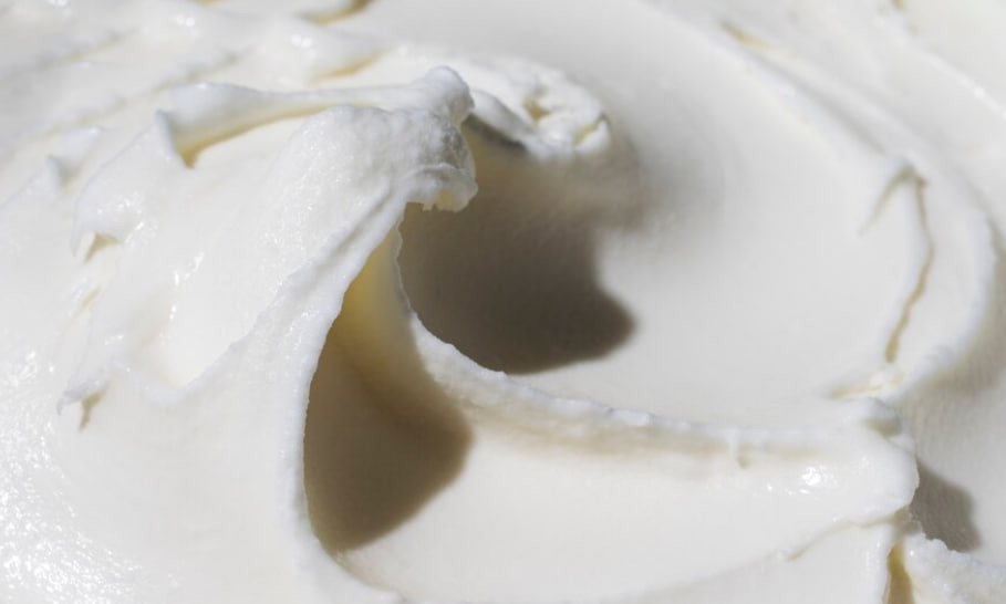 Чтобы сделать творожный крем, необходимо: 300 г 9% творога, 190 г сливочного масла, 180 г сахарной пудры, ваниль.
