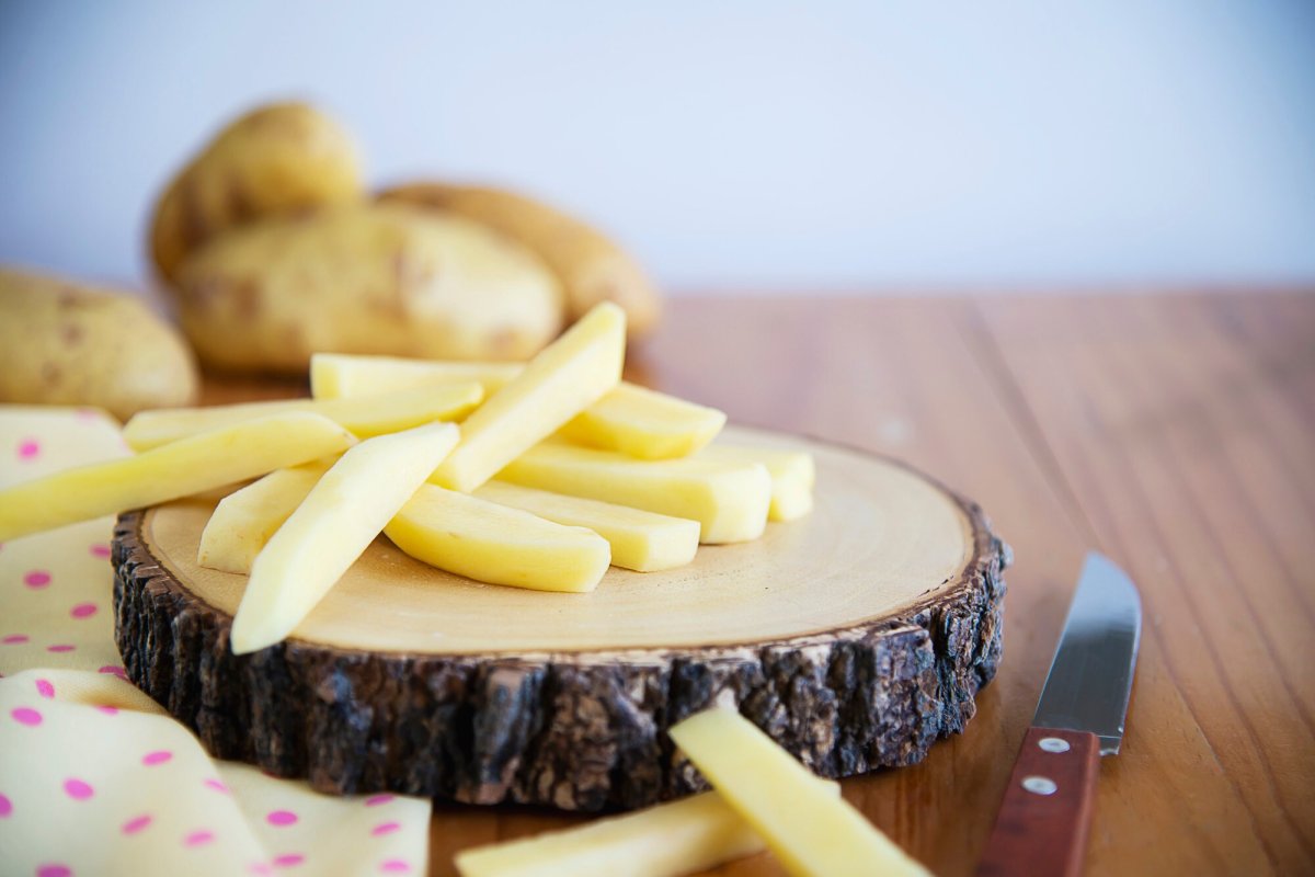 Картофель нужно почистить и нарезать так, как для приготовления картофеля фри. Лук очистить и измельчить.