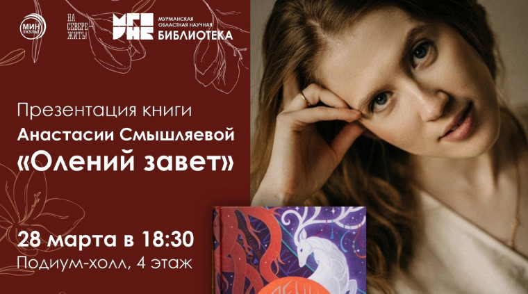 В Мурманске 28 марта состоится презентация книги "Олений завет" мурманской писательницы Анастасии Смышляевой. Мероприятие состоится в областной научной библиотеке.