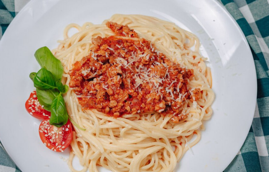 Нам потребуется простой и минимальный набор продуктов: 1 упаковка спагетти, 300 г фарша (любого), 2 помидора, 1 луковица, 2 столовые ложки растительного масла, соль, перец, 50 г сыра, 1 столовая ложка томатной пасты.